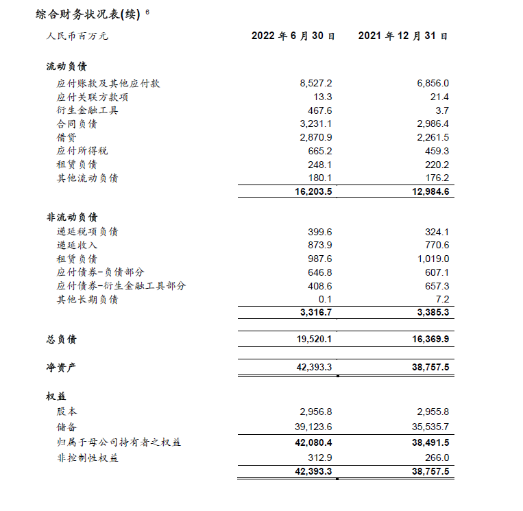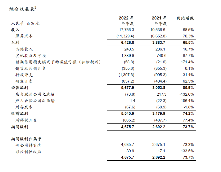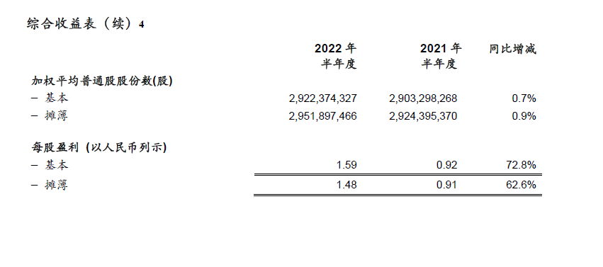 - 稀释每股收益1.48元,同比上升62.6%;稀释经调整Non-IFRS每股收益1.46元,同比增长73.8%。