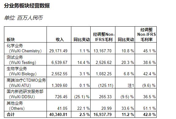 -化学业务实现收入291.7亿元,同比增长1.1%;剔除新冠商业化项目,同比强劲增长36.1%。经调整non-IFRS毛利率为45.1%,同比提升4.0pts,主要得益于汇率影响,同时业务效率持续提升。