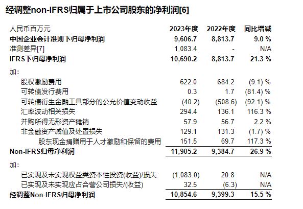 为补充本公司按照国际财务报告准则呈列的综合财务报表,本公司提供non-IFRS毛利和non-IFRS归属于上市公司股东的净利润(不包括股权激励计划开支、可转股债券发行成本、可转股债券衍生金融工具部分的公允价值变动损益、汇兑波动相关损益、并购所得无形资产摊销、非金融资产减值和股东现金捐赠用于人才激励和保留的费用等)、经调整non-IFRS归属于上市公司股东的净利润(进一步剔除已实现及未实现资本性权益类投资收益、应占合营公司盈亏)、经调整non-IFRS每股收益作为额外的财务指标。这些指标并非国际财务报告准则所规定或根据国际财务报告准则编制。