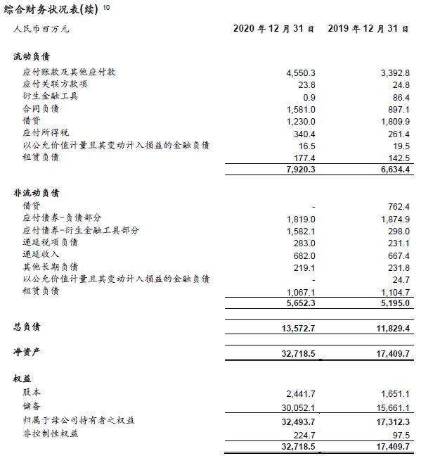 - 归母净利润29.60亿元,同比增长59.6%。2020年,因投资组合及联营企业损益变动合计实现净收益17.17亿元,主要由于投资组合中某些公司实现IPO而导致的股价上升;合营企业股权投资净亏损0.14亿元。2019年,因投资组合及联营企业损益变动合计产生净亏损1.07亿元,合营企业股权投资净亏损0.39亿元。