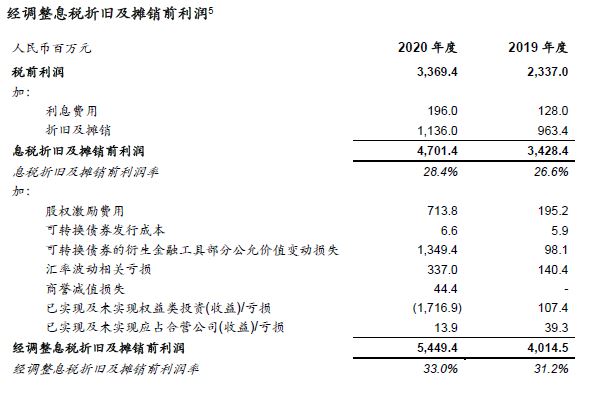 - 2020年Non-IFRS归母净利润52.68亿元,同比增长133.0%。调整事项包括股份支付、可转股债券发行成本、可转股债券衍生金融工具部分的公允价值变动损益、汇率波动相关损益、并购所得无形资产摊销和商誉减值。