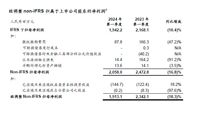 为补充本公司按照国际财务报告准则呈列的综合财务报表,本公司提供non-IFRS毛利和non-IFRS归属于上市公司股东的净利润(不包括股权激励计划开支、可转股债券发行成本、可转股债券衍生金融工具部分的公允价值变动损益、汇兑波动相关损益、并购所得无形资产摊销、非金融资产减值和股东现金捐赠用于人才激励和保留的费用等)、经调整non-IFRS归属于上市公司股东的净利润(进一步剔除已实现及未实现资本性权益类投资收益、应占合营公司盈亏)、经调整non-IFRS每股收益作为额外的财务指标。这些指标并非国际财务报告准则所规定或根据国际财务报告准则编制。