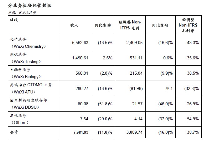 注:1. WuXi ATU经调整non-IFRS毛利在2024年第一季度为人民币(91.96)百万元,相较2023年第一季度同期的人民币(24.01)百万元,下降67.95百万元。