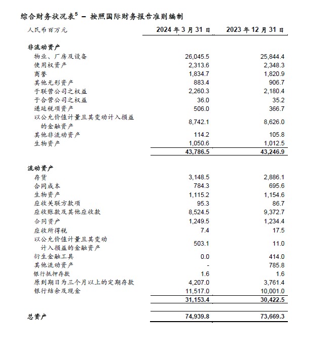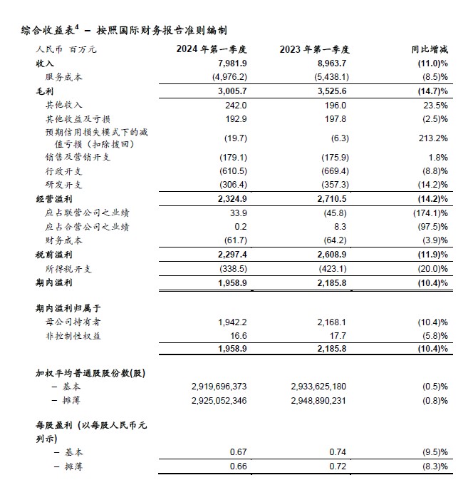 [1] 2023年第一季度和2024年第一季度,公司稀释加权平均普通股股份数分别为2,948,890,231股和2,925,052,346股。